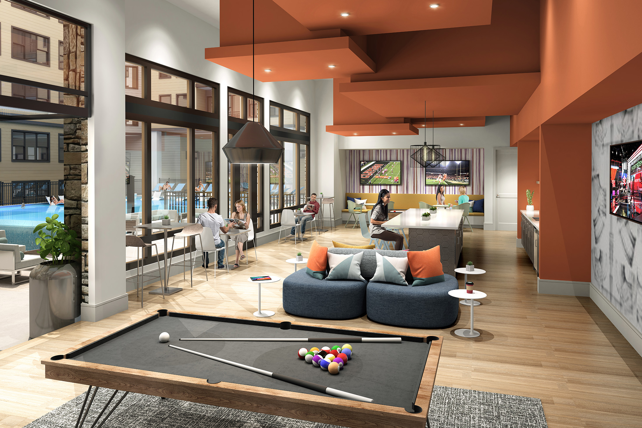 Community amenities include a clubhouse with pool table and gaming area which opens to a courtyard featuring a heated pool with infinity edge, fire pit, hammock lounge, outdoor kitchen, and grilling areas; a fitness center with cardio and strength training equipment; study rooms; and a computer lab. Bixby will be pet-friendly and have plenty of car and bicycle parking. 2-bedroom, 3-bedroom, and 4-bedroom apartments are fully furnished with modern furniture and finishes, and include in-unit washer and dryer, walk-in closets, private bathrooms, optional balconies, a fully equipped kitchen with stainless steel appliances and granite countertops, high-speed internet, and a flat screen TV.