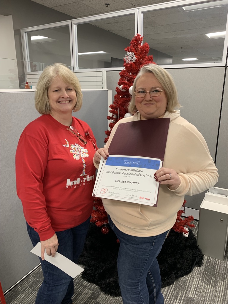 Interim HealthCare proudly announces Melissa “Missy” Warner as the Paraprofessional of the Year, an award given annually to one paraprofessional nationwide who exemplifies the company’s core values.