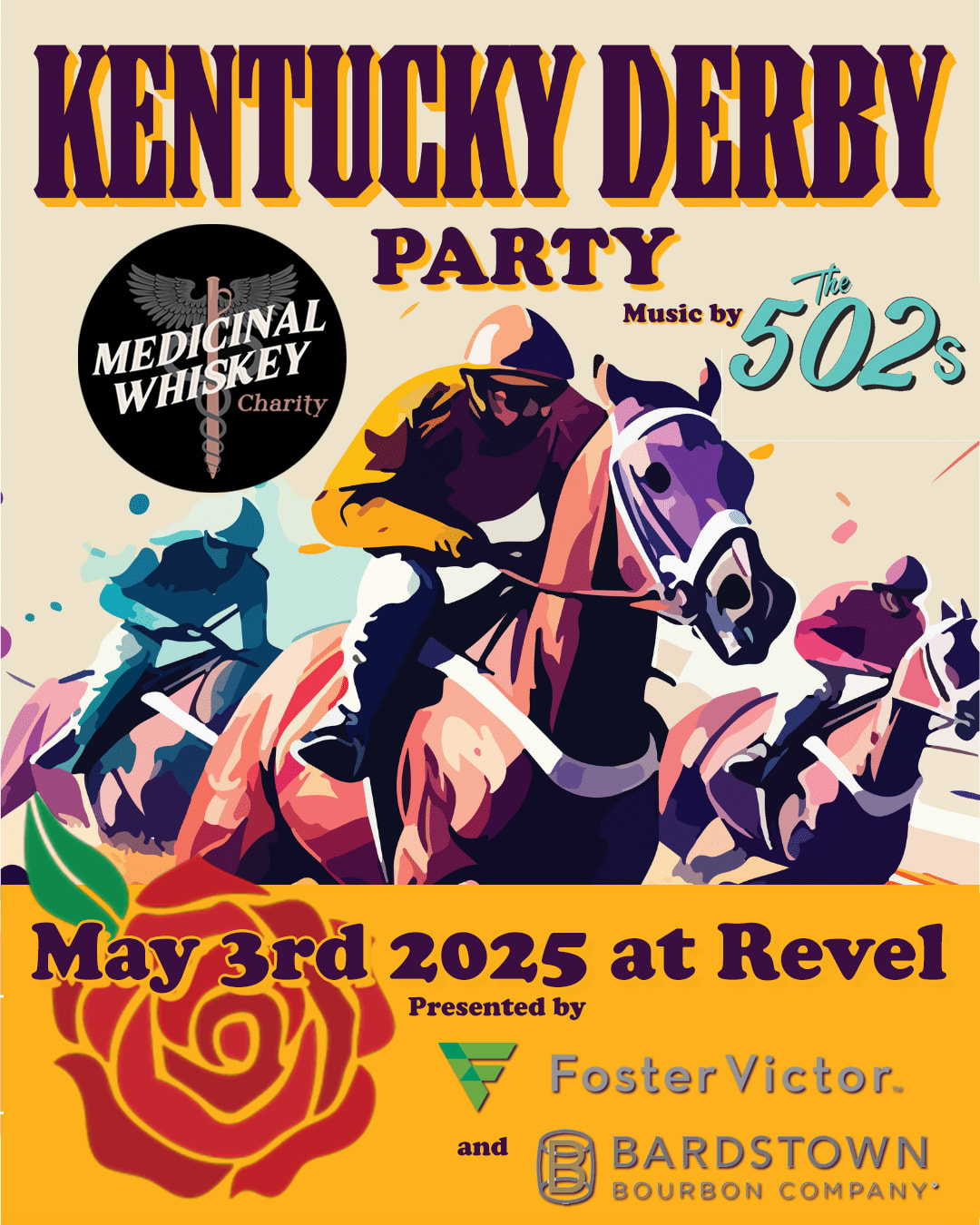 Medicinal Whiskey Charity is hosting a Kentucky Derby Party, presented by Foster Victor Wealth Advisors and Bardstown Bourbon Company, featuring a viewing of the Kentucky Derby, a live performance by The 502’s, bourbon tasting, food and much more!